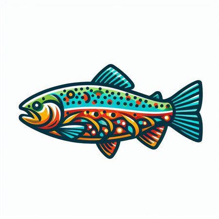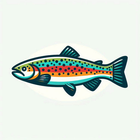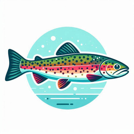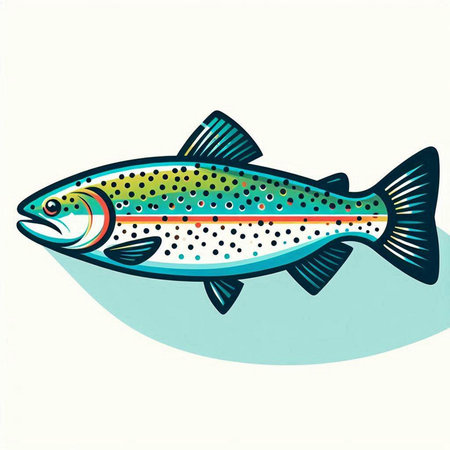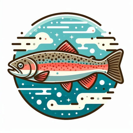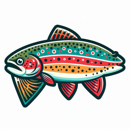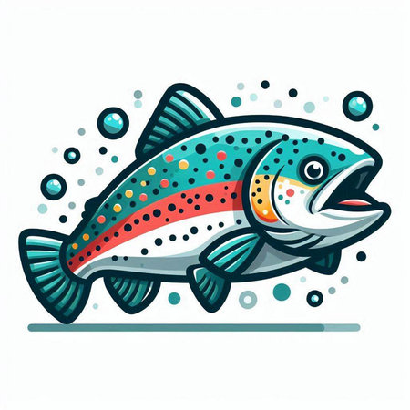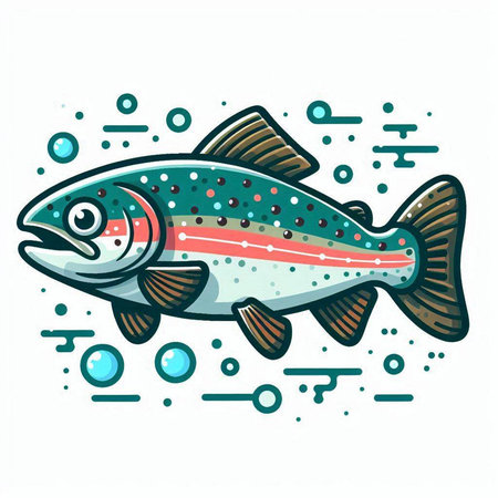 Illustration of a rainbow trout fish isolated on a white background.