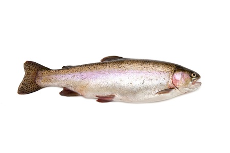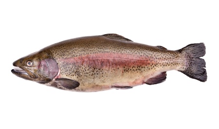 Whole rainbow trout Oncorhynchus mykiss fish isolated on a white studio background