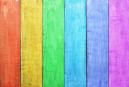 Rainbow colors painted on a wooden surface. Abstract background for design.