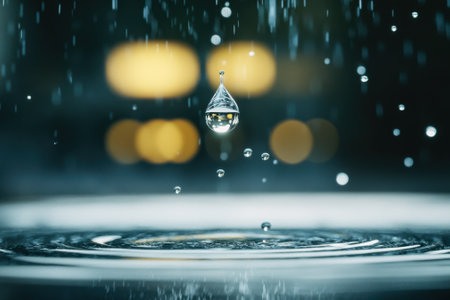 Water droplets on dark surface with orange bokeh lights