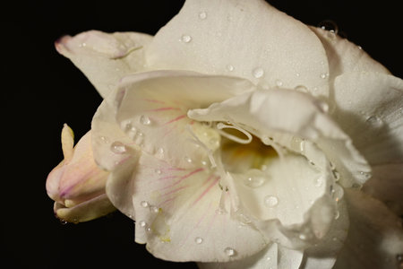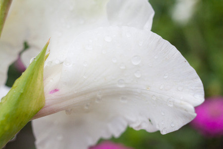 close up raindrop on flower, gladiolus flower