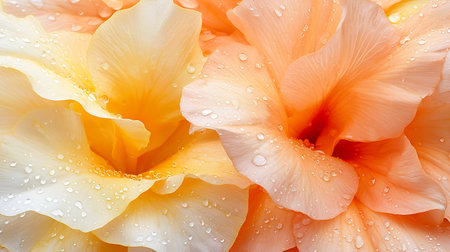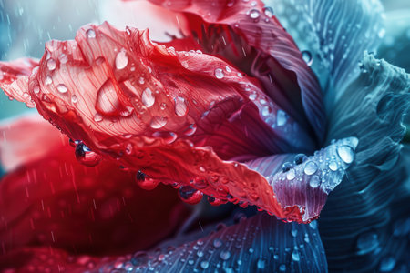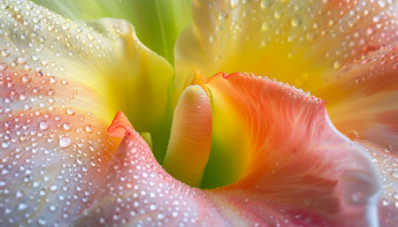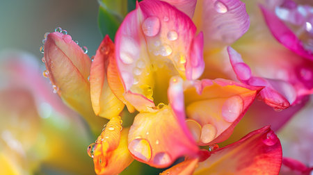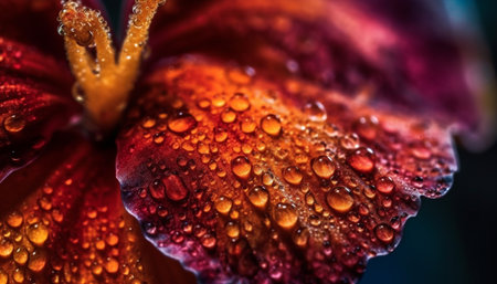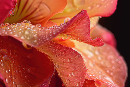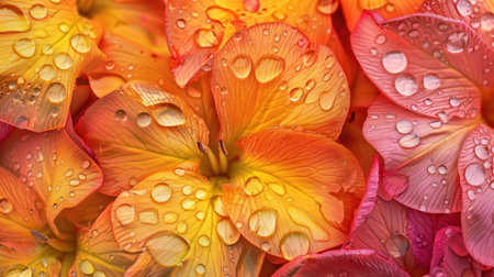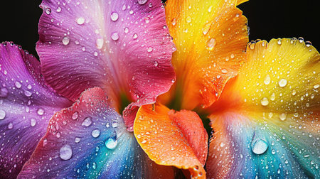 A stunning close-up of colorful flower petals covered in sparkling water droplets. This vibrant image captures the beauty of nature and freshness for any design need.