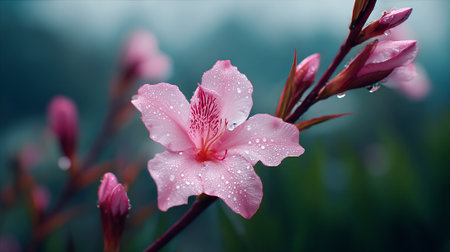 Delicate Pink Blossom Bathed in Dew, Exuding Natural Beauty
