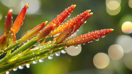 This close-up image features vibrant orange flowers adorned with sparkling water droplets, creating a refreshing and beautiful natural scene perfect for various designs.