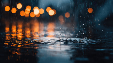 Raindrops on the surface of a puddle with bokeh background