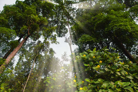 Beautiful tropical rainforest in the morning with sunbeams.
