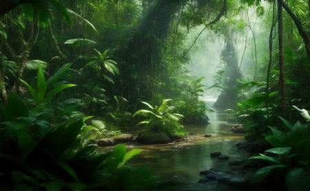 Beautiful deep tropical river jungles landscape scenery AI Generated Image