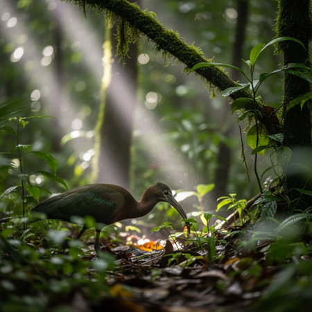 Plegadis falcinellus - bird in the rainforest