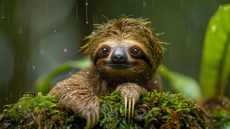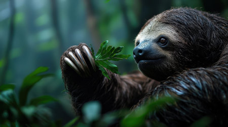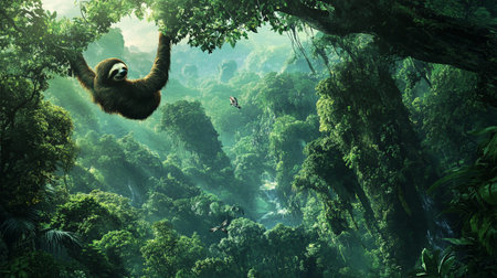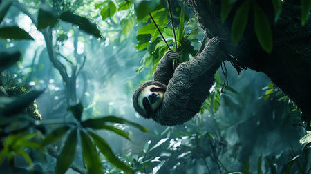 A sloth nestled in vibrant green leaves showcasing the beauty of wildlife in its natural habitat Experience the tranquility of nature through this stunning jungle scene