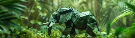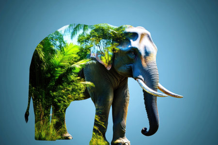 A powerful double exposure of an elephant walking through a green jungle, symbolizing wildlife and conservation with ample empty space.