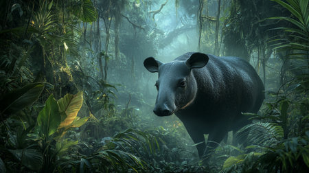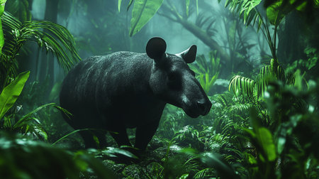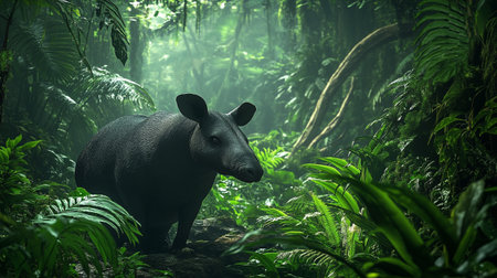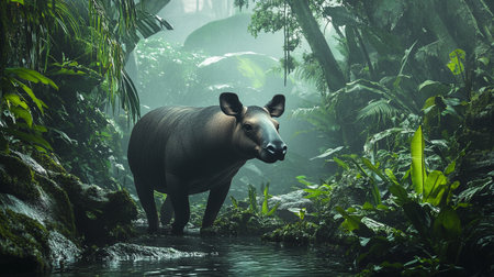 Tapir in the rainforest. 3D render of a tapir in the jungle.