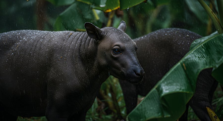 Tapir in rainforest. Wildlife scene from tropic jungle.