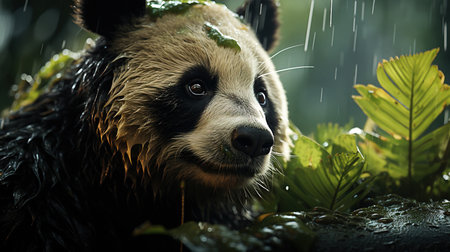 Chubby Black and White Panda at the Sichuan Panda Sitting on a Dense Bamboo Forest in The Background AI Generative