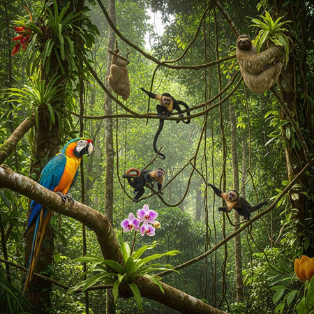 exotic pet with view of lush, tropical rainforest, created with generative ai