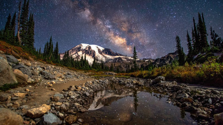 This is the picture of Mount Rainier with Milkyway at Mount Rainier National Park, Washington.