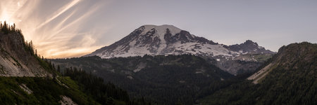Panorama Of Mount Rainier At Sun Set From Stevens Canyon Road in Mount Rainier National Park