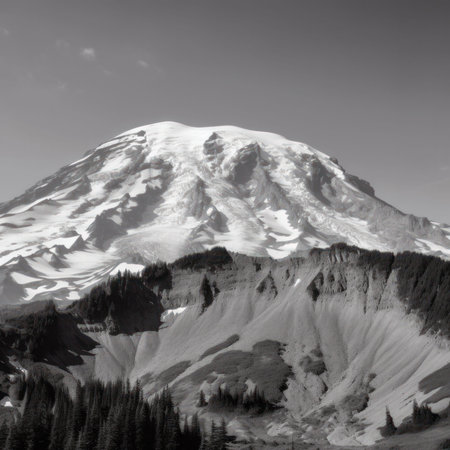 A majestic mountain peak capped with snow against a clear sky - AI generated