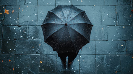 Lonely Stroll Beneath an Umbrella in the Rain