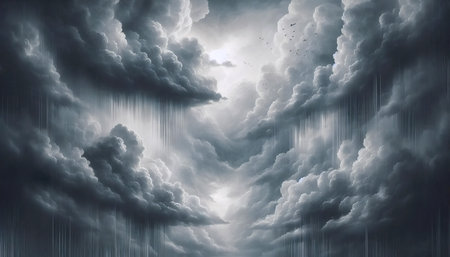 dark storm clouds with falling rain