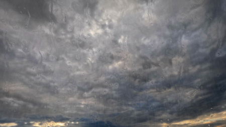 Beautiful clouds in background with raindrops in focus