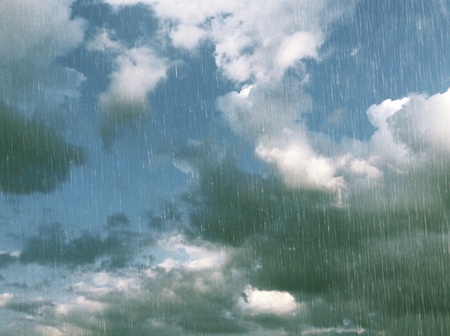 rainfall on sky with clouds - pretty weather background - photo of nature