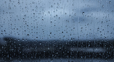 Rain drops on window glass surface. Rainy spring background