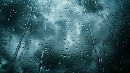 A close up of a window with rain drops on it, AI