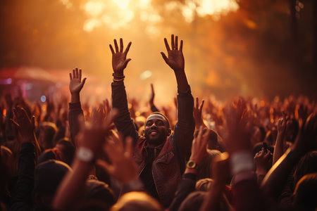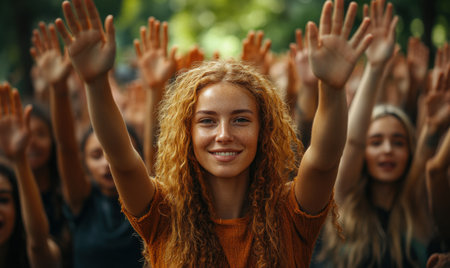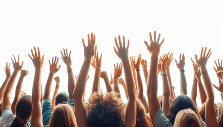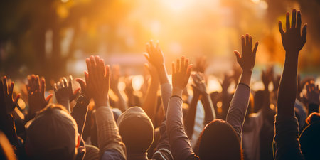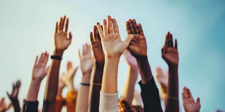 Raised Hands in Unity Symbol of Hope, Support, And Community Engagement in Vibrant Setting