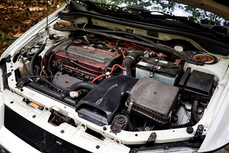 Belgorod , Russia - AUG, 18, 2018: Modification of the turbo engine Close up details of car motor.