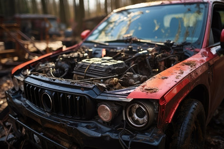 Inside damage car hood engine professional advertising photography
