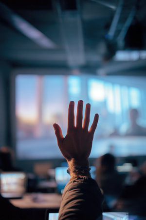 hand raised in the middle of the classroom generative ai