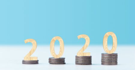 Growth Forecast Concept For 2020 - Coins Stack On Wooden Blocks