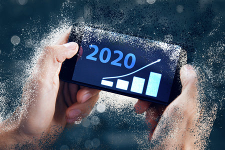 Growth in 2020 year. Business graph with arrow up. Mixed Media Corporate Background.