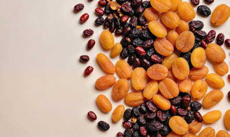 Healthy food organic nutrition. Dried dehydrated fruits raisins apricots and cranberries on wooden table