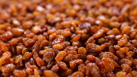 Dried cranberries, yellow and black sweet raisins as ingredients for granola and breakfast. Raisins and cranberries as a food background for your design
