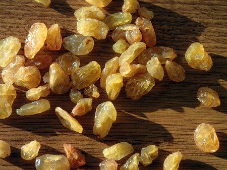 Closeup Shot Of Dry Grape Fruits, Raisins On The Wooden Table.