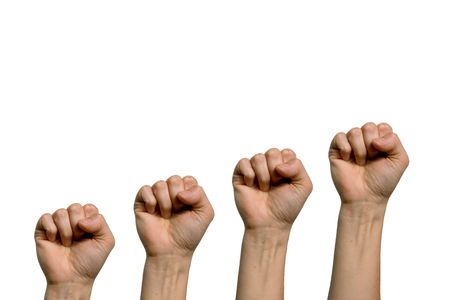 Fist raised up on white background