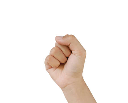 Man clenched fist on white background