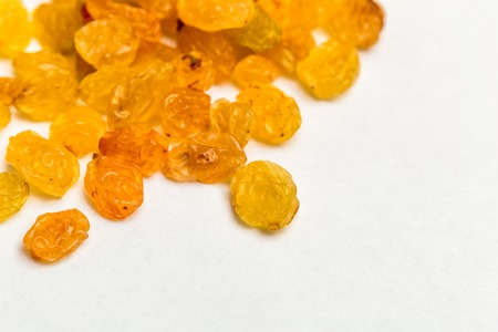 Close-up of lots of yellow raisins. Stock footage. Background of fresh yellow raisins for making sweet pastries. Sweet dried fruits