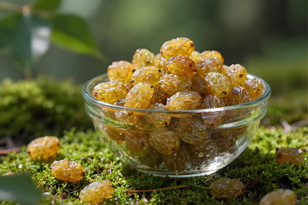 Background of dried raisins, a nutritious and delicious option for vegetarian sweets in diet food.