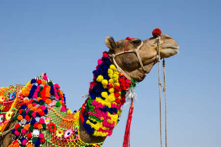 close up shot of a decorated camel at pushkar rajasthan india