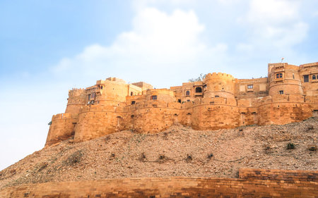 JAISALMER, INDIA - February 23 2020: Outside Jaisalmer fort yellow sandstone architecture desert city in Jaisalmer or golden city Rajasthan, India