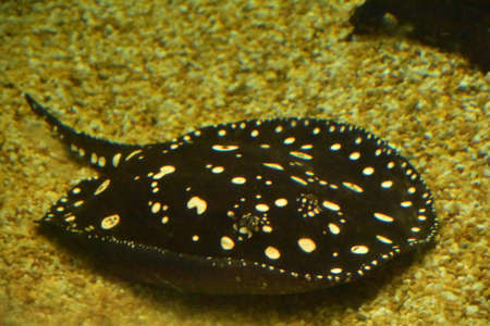 Stingray motoro (Potamotrygon motoro) in an aquarium on a sandy bottom.