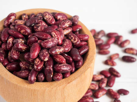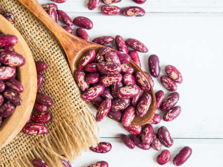Red Kidney Bean on white wooden textured table, food background with copy space