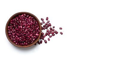 Closeup red bean or kidney beans in wooden bowl isolated on white background with clipping path. Top view. Flat lay.