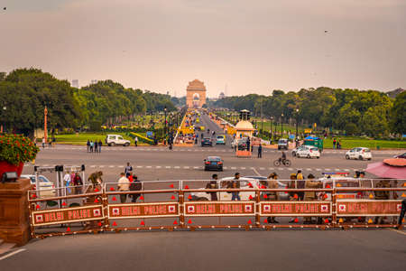 NEW DELHI, INDIA, MARCH, 2019: Rajpath 'King's Way' is a ceremonial boulevard in Delhi that runs from Rashtrapati Bhavan on Raisina Hill through Vijay Chowk and India Gate to National Stadium, Delhi.