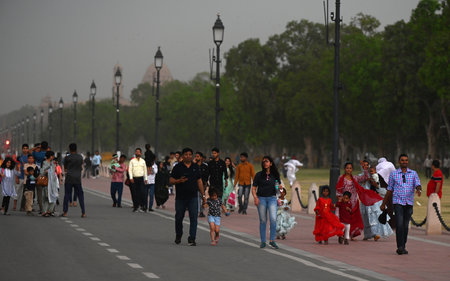 NEW DELHI, INDIA - AUGUST 25: Visitors enjoy pleasant weather at Kartavya Path,, on August 25, 2024 in New Delhi, India. (Photo by Sanjeev Verma/Hindustan Times )