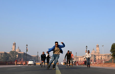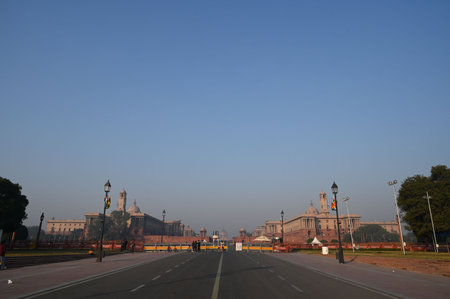 morning light at rajpath road, New Delhi, India