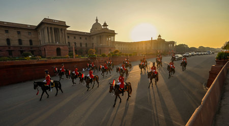 New Delhi, India, October 2018: Guard-changing ceremony of President's Bodyguard an elite household cavalry regiment of the Indian Army held at the Rashtrapati Bhavan or President's House.