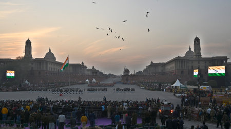 NEW DELHI, INDIA - JANUARY 12: Presidential Bodyguards personnel seen practicing for upcoming Republic Day Parade at Kartavyapath on January 12, 2025 in New Delhi, India. North India is reeling under cold weather with temperatures plummeting across severa